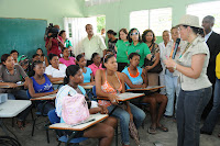Durante la actividad, la primera dama, Margarita Cedeño de Fernández, entregó a los 440 niños de la escuela de esta localidad y comunidades cercanas bicicletas, como parte del proyecto "A la escuela sobre ruedas" que ejecuta el programa Progresando de la institución, además de mochilas con materiales educativos.