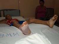El niño estuvo que ser internado en el grupo medico Mao, en la sala numero 6, el cual presenta según el diagnostico de los médicos que los atiende heridas en la región del tobillo derecho, con lección del hueso calcáneo, siendo su estado de pronostico reservado.