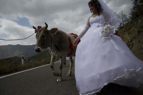 Pero esto no es todo: cada pareja recién casada que proceda de una aldea recibe un regalo viviente, una vaca, a condición de que se la lleven ellas mismas a casa. Durante el ensayo general (con vestido incluido), las parejas fueron llevadas a la aldea de Vank, donde se les pidió que guiaran cada una su vaca. Resultó que las novias tenían miedo de las vacas y las vacas de las novias. Al final, decidieron cooperar y todo marchó bien