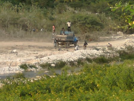 Según se observa las depredaciones de arenas, piedras y gravas son trasportadas en camiones hacia el poblado haitiano de Anse-Au-Pitre, para construcción de calles, aceras, contenes, edificaciones y otras construcciones