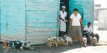 Perros enfermos por la escabiosis, gallinas, cerdos y chivos comparten el habitad de las 3,500 familias que conforman el distrito municipal de El Salado. Los cerdos y los perros esparcen enfermedades a niños descalzos y desnudos.