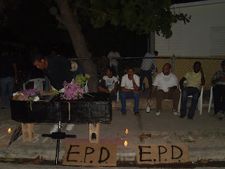 PEDERNALES.-Con velas encendidas y la canción evangélica que dice “Cojee tu maleta Satanás y vete de aquí” alrededor de una Caja de Muerto con la foto de la síndica María Adalgisa Matos, construida por un grupo de Jóvenes que permanecían en la calles céntrica Libertad Esquina Duarte, simbolizando de este martes la salida de la alcaldesa del ayuntamiento Municipal.