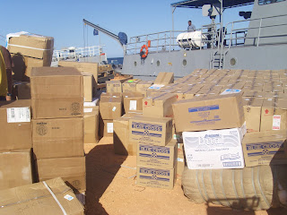 Permanecían este jueves, en espera de poder transportar en los buques dispuestos por la Marina de Guerra, la gran cantidad de ayudas dispuestas para los damnificados del terremoto en Haití.