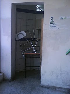 Los alumnos se ven precisados a usar una deteriorada letrina para realizar sus actividades fisiológicas, lo que según dicen es una situación sumamente difícil.