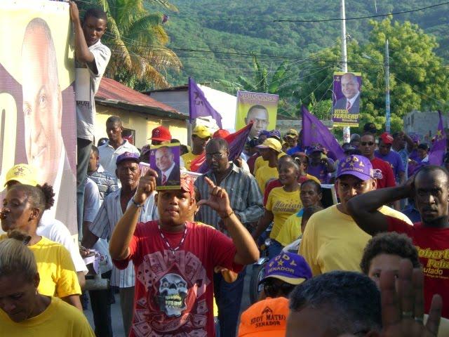 Los lugareños del sector de Pueblo Nuevo aclamaban la candidatura a síndcio del diputado Víctor Manuel Terrero (Vitico), quien en apenas 10 dias de campaña según las encuesta esta en un empate técnico con el candidato del PRD.