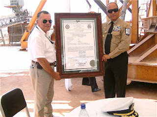 En el acto se hicieron entregas a los ejecutivos de la empresa Cementera de varias pergaminos y el documento de certificación del Muelle, por el Vise-almirante Soto de la Rosa, puerto que cuenta con una instalación confortable, la cual fue reconstruida de los daños dejados por fenómenos atmosféricos causado por fenómenos atmosféricos pasado.