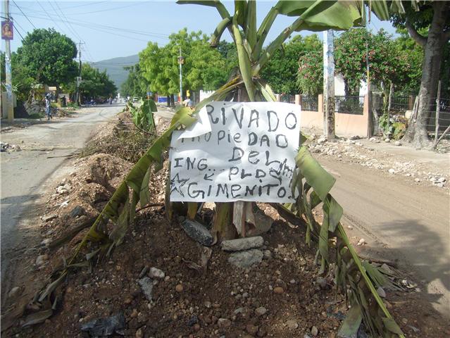 En una de estas fue colocado un letrero señalando dicho tramo como propiedad privada del ingeniero que alegadamente tiene a su cargo los trabajos.