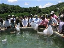 La primera etapa comprende tres estanques rectangulares de tierra con un promedio de 1,200 metros de diámetro y profundidad de 1.5 metros, y dos estanques circulares de cemento de 10 metros de diámetro, donde fueron liberados miles de alevines que en 120 días producirán más de 15 mil libras de pescado, según dijo la bióloga del proyecto Marina Tejera.