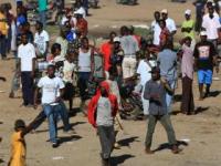 Ante la imposibilidad de entrar a República Dominicana, algunos haitianos desesperados lanzan piedras a los soldados dominicanos y al portón fronterizo que lo separa.