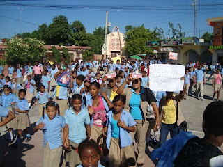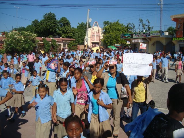 Cabral,Barahona.-Profesores afiliados a la seccional de La Asociación Dominicana de Profesores (ADP) de este municipio, marcharon ayer por distintas calles reclamando la asignación del 4% del Producto Interno Bruto (PIB) para la educación como contempla la ley general de educación 66- 97 y la Constitución de la República, así como una serie de reivindicaciones como son seguro medico, pago a tiempo a los profesores jubilados entre otros reclamos.