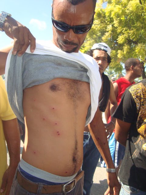 Los heridos fueron identificados como Luís Ernesto Hungría, Franklin Feliz (Canco) y Diómedes Féliz Urbáez, quienes armados de piedras, botellas, polos, machetes, chilenas, se enfrentaron a los agentes policiales dirigidos por el coronel Martines Rodríguez