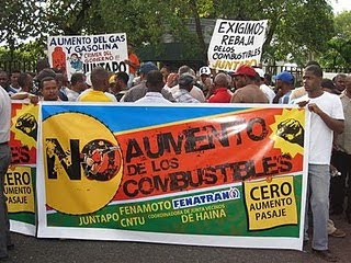 El alto precio de los combustibles: la gasolina, el GLP que se usa para cocinar en los hogares y el gasoil han provocado una espirar inflacionaria que esta empujando a la población a tomar las calles como única alternativa de frenar la política impositiva neoliberal que aplica este gobierno que solo sabe mantenerse en el poder a fuerza de prestamos internacionales provocando un endeudamiento externo que hipoteca a nuestra isla como en la época de la colonia.