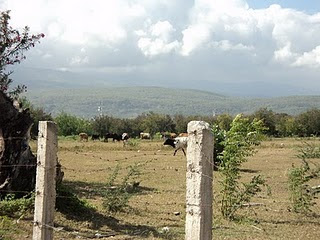 En ese mismo lugar se observa la primera maquina de transportar las cañas como monumento, pero rodeado de vacas.