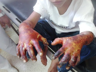 El menor sufrió serios daños en sus dedos así como en otras partes del cuerpo.