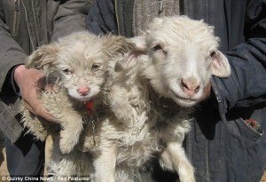 China.- Supuestamente la oveja dio a luz a un perro en una granja en China, afirma su propietario Nmaraiying Liu, que no ha parado de tener visitas de gente que se reúne para ver al cachorro cordero. “Yo estaba cuidando las ovejas, y vi un carnero lamiendo a su cordero recién nacido en la pradera. El cordero estaba aún húmedo”, dijo. Cuando vi de cerca para comprobar si el cordero estaba bien, me sorprendí porque parecía tan extraño, como un cruce entre una oveja y un perro”. “Estaba un poco asustado, ya que he visto crías de ovejas durante 20 años y nunca había visto una criatura así”. A pesar de que tiene la lana como los de un cordero, la boca de la criatura, la nariz, ojos, patas y cola son parecidos definitivamente a los de un perro. Liu dice que la criatura aún juega como un cachorro. Los veterinarios, por extraño que parezca, señalaron que es imposible que una oveja pueda dar a luz a un perro, pero este pronunciamiento no ha detenido a los turistas, para observar al perro cordero en la granja del Condado de Fugu, provincia de Shaanxi. De acuerdo al Centro Tecnológico lo más probable es que el animal de Liu, no es más que un cordero anormal.