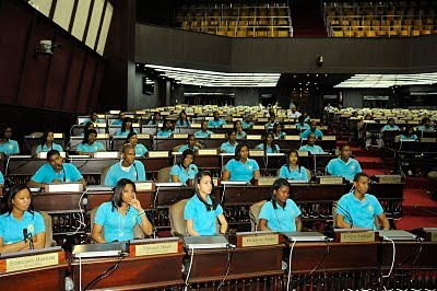 Estudiantes del liceo de Cristo Rey de Barahona se convierten en “diputados por un día” en v isita realizada a la Cámara Baja SANTO DOMINGO.-Un grupo compuesto por 80 estudiantes y diez profesores del liceo de Cristo Rey de Barahona, fueron los invitados de la diputada Noris Medina, quien le enseñó a los jóvenes de tercero y cuarto año de media las actividades del legislador. Los estudiantes son parte del programa “Diputado por un Día” que realiza la Cámara Baja, tocándole en esta ocasión a los futuros bachilleres de Barahona, quienes recorrieron las diferentes áreas del edificio que compone el Congreso Nacional en el populoso sector de La Feria. La diputada Medina dirigió una sesión simulada, tomando como secretario, vicepresidente y vocero de los diferentes partidos a compañeros de clase, lo que generó entusiasmo entre los jóvenes. Con el objetivo de hacer el simulacro más real, los estudiantes discutieron una agenda, la cual tenía como primer punto la presa de Monte Grande, obra que realizará la empresa Andrade Gutiérrez y que será de gran importancia para el desarrollo de Barahona y la región Sur de la República Dominicana. Luego de la Cámara de Diputados, los estudiantes fueron llevados por la diputada Medina al Palacio Nacional, donde recorrieron la primera y segunda planta de la casa de Gobierno, así como diferentes oficinas. En el Palacio Nacional saludaron al jefe de la Dirección Nacional de Control de Drogas (DNCD), mayor general Rolando Rosado Mateo, así como al jefe del Cuerpo de Ayudantes Militares, el barahonero Héctor Belisario Medina y Medina. Más tarde, los estudiantes y los profesores, a quienes se les entregó un ejemplar de la Constitución de la República Dominicana, fueron llevados a almorzar al comedor de la Cámara de Diputados. Fuente: Armario Libre
