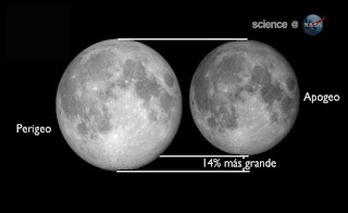 "La Luna en su lado perigeo es percibida alrededor de 14% más grande y 30% más brillante que cuando se observa en el lado apogeo de su órbita", explicó en el artículo de la NASA el doctor Tony Phillips.
