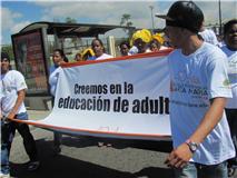 La actividad tenía como objetivo el reclamo de mayores oportunidades educativas para los jóvenes y adultos del país. Los recursos que el Estado dominicano y el sector privado dedican a la educación sistemática de los adultos que no han sido alfabetizados o que no han completado su educación básica o media son muy escasos, a pesar de tratarse de una población de varios centenaes de miles de personas.