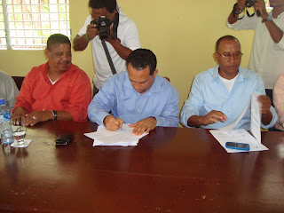La firma del acto se produjo en el marco de un acto que culmina en 10mo Festival Caribeño de la Aves Endémicas, auspiciado por la Sociedad para la Conservación y Estudio de las Aves del Caribe y coordinado localmente por los Grupos Ecologistas Tinglar y el apoyo del Ministerio Ambiente y la Asociación de municipios de la Región Enriquillo (Asomare)