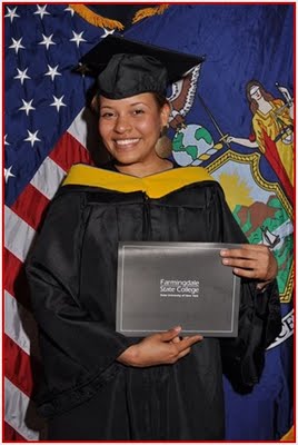 Al momento de recibir su titulo de manos del Dr. Hubert Keen, Presidente (Rector) de la New York State University of Farmigdale.