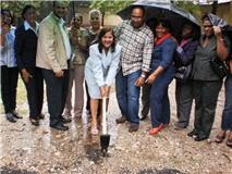 BARAHONA.- El Gobierno dispuso la remodelación de una escuela , ampliación y mantenimiento de otra, ambas del nivel básico, por un monto superior a los 65 millones de pesos, cuyo primer picazo fue dado bajo un fuerte aguacero por la licenciada Cándida Espinosa, Directora Regional 01 de Educación.
