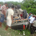 Tanto el chofer Amable Cordero, como su ayudante, Freddy Adams Martínez, de 23 años, resultaron ilesos en la volcadura de la patana.
