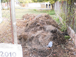 Esos escombros de malezas que ya tienen un mes en el área de la cancha por la puerta de salida hacia la calle Sánchez, se han convertido en un criadero de plagas dañinas.