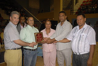 BARAHONA.- La Asociación de Baloncesto de esta ciudad, entregó una placa de reconocimiento al periodista Teuddy A. Sánchez por sus aportes en la difusión de la disciplina deportiva.