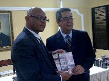 Al final del acto el periodista Arturo Taveras hizo entrega de dos ejemplares de su libro a la Alianza Ciabena, los cuales fueron recibidos por el presidente de dicha entidad, Jhonny Guerrero