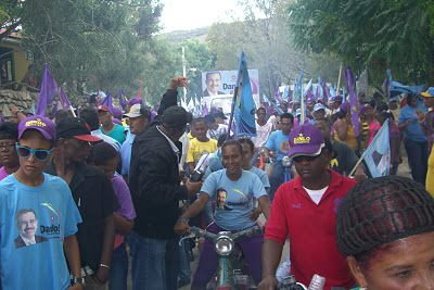 Caminando, montados en pasolas, motores, vehículos y en burros, los enardecidos peledeístas ocuparon de extremo a extremo todas las calles de Las Salinas, lanzando diversas consignas a favor de Danilo Medina y Margarita Cedeño, candidatos presidencial y vicepresidencial del partido oficialista.