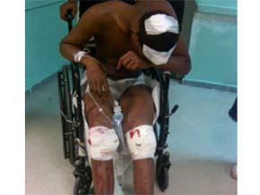 Cuando lo encontraron, lo golpearon en la cabeza con una pistola hasta hacerle brotar la sangre. Después, lo esposaron y lo sacaron hasta la acera donde lo obligaron a sentarse en una silla, delante de todo el vecindario.