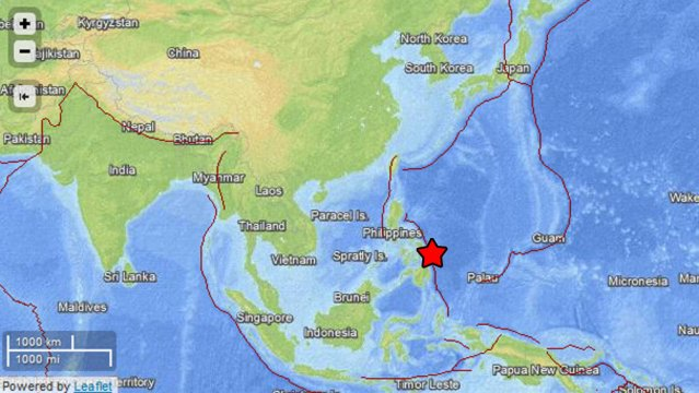 Ubicación del terremoto de magnitud 7.9 que se produjo en una zona marítima al este de Filipinas.