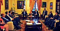 En el encuentro encabezado por el presidente Danilo Medina, también participaron los ministros de Hacienda, Simón Lizardo; de la Presidencia, Gustavo Montalvo; de Economía, Temístocles Montás, y el gobernador del Banco Central, Héctor Valdez Albizu.
