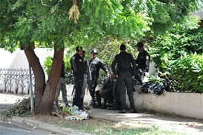 Desde las 7:00 de la mañana de hoy en el lugar fueron apostados unos 20 agentes policiales del Campamento Duarte de la Policía, entre ellos de los denominados cascos negros.