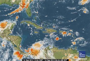 Una onda tropical localizada sobre Puerto Rico, moviéndose hacia el Oeste, se espera que cruce el territorio dominicano a partir de esta tarde y la noche, lo que unida a una vaguada ubicada en la porción oriental de Cuba incrementarán la actividad de aguaceros acompañados de tormentas eléctricas sobre las regiones Norte, Noreste y Sureste, extendiéndose gradualmente hacia el resto del país.