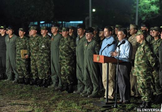 "Ahí está la mano abierta, y ojalá lleguemos al fin de este conflicto que tanto daño, tanta violencia, tanta muerte le ha causado a Colombia", expresó Santos a la prensa en una base de Tolemaida.