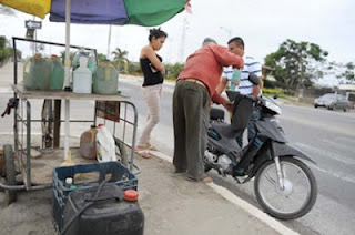 “La situación llega hasta el punto, que a pocos metros del comedor económico de aquí, donde cientos de personas pobres acuden a comprar raciones de alimentos cocidos, fue improvisada una especie de bomba, donde se puede ver un letrero, anunciado la venta de combustible del que subsidia el gobierno” Dijo una ama de casa que no reveló su nombre.