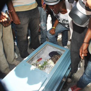Barahona, (República Dominicana).-Una multitud se presentó hoy frente al edificio que aloja a la Dirección Regional Sur de la Policía en esta ciudad con el ataud conteniendo del joven Ronald Alan Encarnación, muerto de un balazo al pecho el pasado domingo por un miembro de la institutición a orillas de la playa Punta Inglesa, durante la celebración en las pasadas Fiestas Patronales Nuestra Señorta del Rosario,