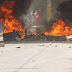 TAMAYO: Neumáticos incendiados y varios escombros mantuvo el transito paralizado por mas de dos hora, en la tarde de este lunes en el municipio de Tamayo.
