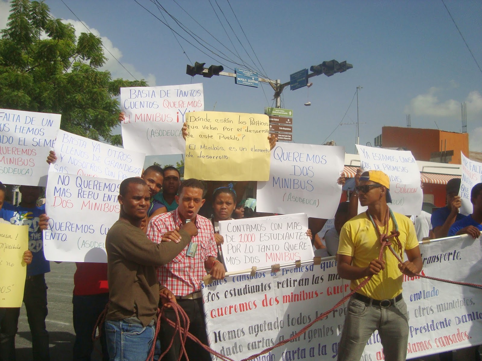 Los estudiantes encabezado por su presidentes, Alexis Gómez y demás miembros de la Asociación de Estudiantes Universitario de cabral (ASODUCA) se concentraron a la entrada de la localidad, para demandar las autoridades del gobierno la entrega de autobús para los estudiantes que se desplazan al Centro Universitario del Suroeste (Curso) a estudiar distintas carreras.