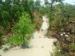 EN CABRAL.- Las fuertes lluvias caídas en las últimas horas han provocado que miles metros cúbicos de sedimentos o polvillo provenientes de la roca caliza que genera la empresa Kourys Industrial sean depositados en zona costera de la laguna Rincón y propiedades agrícolas del sector de Mata Hambre, afectando la producción agropecuaria y causando daños al medio ambiente.