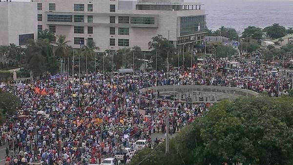 SANTO DOMINGO.- En estos momentos miles de personas se están congregando en la explanada frontal del Congreso Nacional, donde exigen que se modifique la Constitución de la República, a los fines de que el presidente Danilo Medina pueda optar por un segundo mandato.