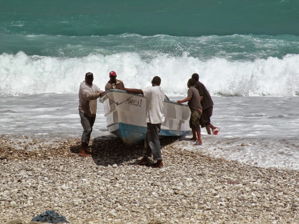 Mientras tomaba las fotos llegó una yola cargada de peces, donde compré Carite fresquecito en ruedas, el cual comí en mi casa frito con escabeche, acompañado de moro con coco, agucate y tostones. Cerré el caso con una taza de café caliente "Made in Barahona".