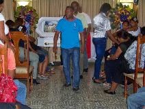 BARAHONA.- En medio de llantos, dolor y rostros entristecidos, son velados en la funeraria El Ángel de esta ciudad, los restos mortales del raso policial Anderson Guzmán, muerto de un disparo en la cabeza en las protestas que protagonizaron grupos populares en el municipio de Salcedo en rechazo a la sentencia que descarga a Félix Bautista.