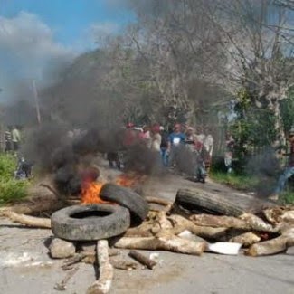 Isabela, Bahoruco.- Comunitarios del Batey Isabela de la zona Cañera, mantienen paralizado el transporte vehicular desde esa zona hacia la provincia San Juan, Barahona y las comunidades de la parte alta del municipio de Tamayo, en reclamo de la construcción de una escuela, cuyos trabajos están paralizados desde el 2013.