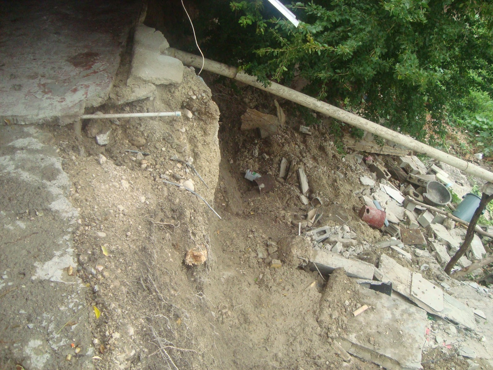 En Cabral.- Una vivienda resulto afectada en la parte traseras por el deslizamiento de la tierra cauda por las lluvias dejada tormenta Erika por el litoral sur del país.