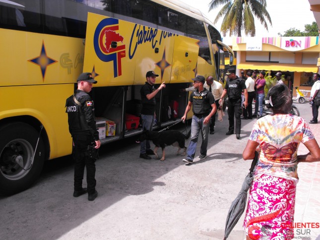Periodistas de las Calientes del Sur, observaron que todo se llevó en completo orden, tanto en la empresa Caribe Tours, al lado del Palacio de Justicia, así como en la terminal de Transporte Tenguerengue, donde el oficial, solicitaba el permiso correspondiente para el chequeo rutinario de parte de sus agentes, así como las unidades caninas.