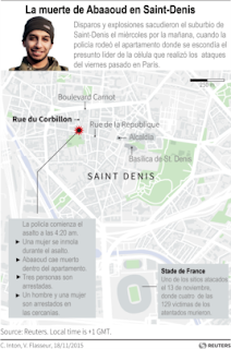Abaaoud era el objetivo principal del asalto de la policía a un apartamento en el barrio de Saint-Denis, al norte de París, el miércoles. Su prima, Hasna Aitboulahcen, fue identificada también como la mujer que detonó su chaleco-bomba luego de conversar brevemente con varios oficiales de policía.