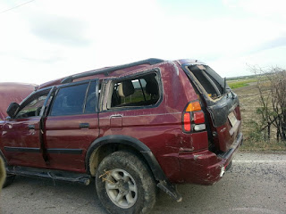 Duvergé.- Unas personas que se transportaban en una jeepeta, sufrieron un accidente al chóferes del vehiculo perder el control al llegar a un corte irresponsable que tiene el tramo carretero La Colonia- Neyba.