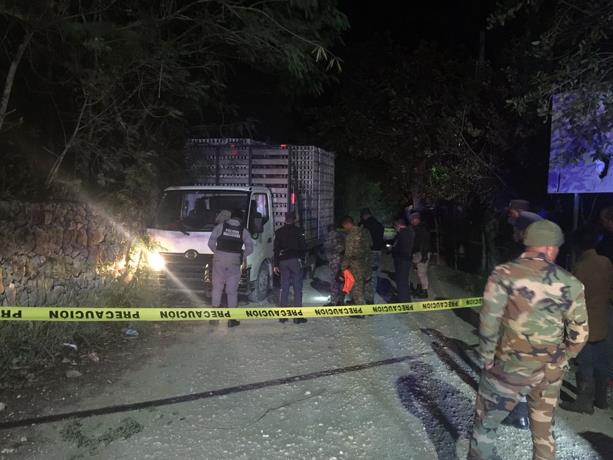 Se informó que el hecho se produjo cuando en la carretera fueron colocadas piedras y otros objetos como emboscada para asaltar a las tres personas, las cuales fueron asesinadas en el interior del vehículo cargado de pollos.